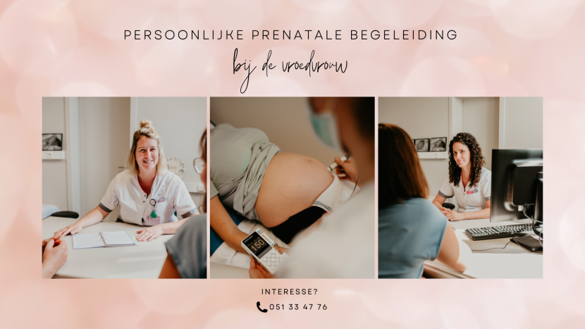 Naast de opvolging bij de gynaecoloog bestaat de mogelijkheid tot consultaties bij de vroedvrouw. Tijdens deze consultaties bieden wij u :